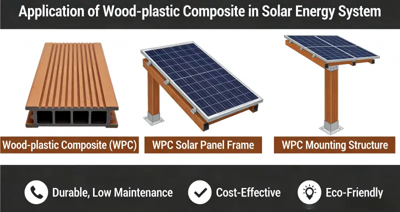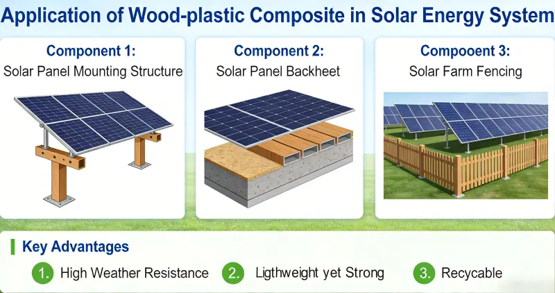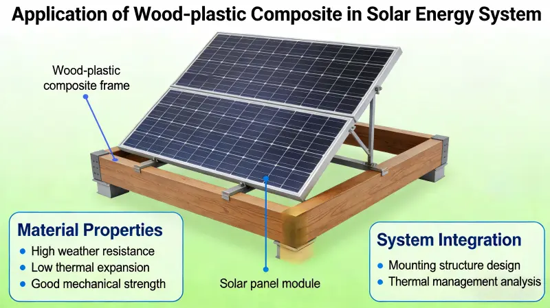 Le composite bois-plastique (WPC) est devenu un matériau clé dans les systèmes d'énergie solaire, y compris les supports photovoltaïques (PV), les centrales électriques flottantes, l'intégration de bâtiments photovoltaïques et le stockage d'énergie solaire concentrée (CSP), en raison de ses propriétés écologiques, résistantes aux intempéries, légères, nécessitant peu d'entretien et faciles à traiter. Il remplace progressivement les matériaux traditionnels en métal et en bois.